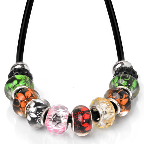 1 kép Maria King Bőr és nemesacél nyaklánc virágos üvegdíszekkel, márkadobozzal