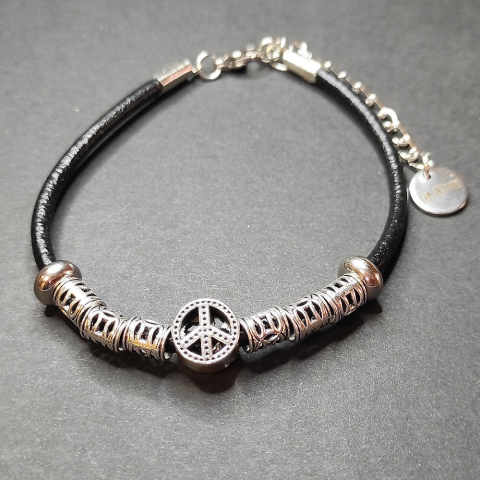 1 kép Maria King Bőr karkötő Békejel dísszel, márkadobozzal