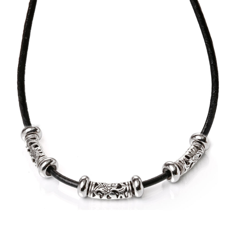 1 kép Maria King Mágnes záras bőr nyaklánc ezüst színű díszekkel 3., márkadobozban