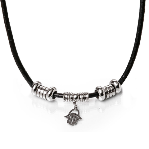 1 kép Maria KIng Mágnes záras bőr nyaklánc Fatima keze medállal, márkadobozban