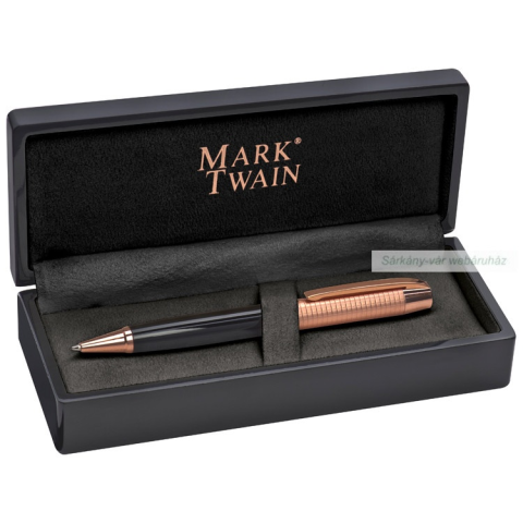 Kiváló minőségű Mark Twain réz golyóstoll forgó-mechanikával. A tolltartó fekete lakk színe illik a toll fekete színéhez. Emblémázását CO2 gravírozással javasoljuk. Méret:18 × 7,3 × 3,9cm Emblémázási méret:5 × 3cm Rendelésre: 3-10 nap!