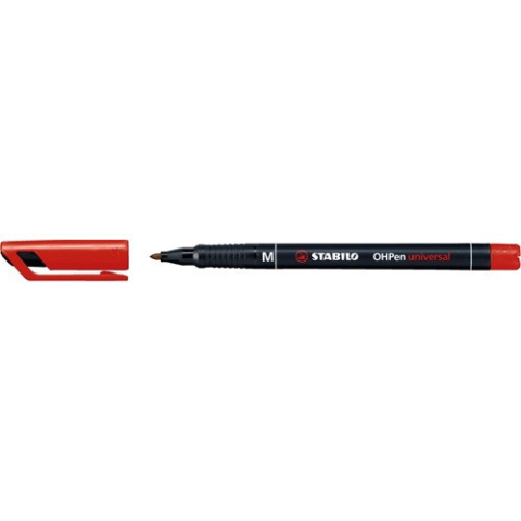 Marker Stabilo OHPen 843 M permanent piros Szinte minden sima felületen használható Csúszásmentes fogózóna és praktikus csiptető Vonalvastagság: 1 mm Akár 3 napig kupak nélkül hagyható