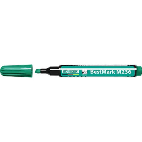 Marker Stanger M236 permanent vágott zöld Típus: M236 Hegy: vágott Írásvastagság: 1–4 mm Írásszín: zöld permanent festékkel töltött marker alkoholbázisú műanyag, fém-, üveg- és fafelületekre