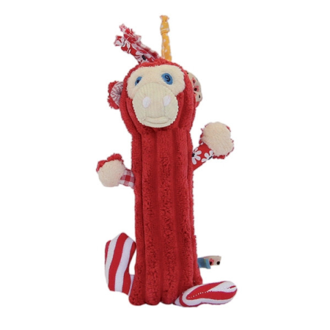 Különböző szövetekből, textil anyagokból álló, sípoló plüssfigura, melynek érintése hihetetlenül kellemes. Gyermekkézbe tervezett, dédelgetni, nyomogatni, simogatni való, majmot formáló plüssjáték. Ahogy már az egészen kis gyermekek is felfedezik a kül