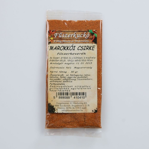 Különleges, keleti ízekre vágyik? Akkor próbálja ki ezt a marokkói csirke fűszerkeverékünket! Szárnyas ételek elkészítéséhez ajánljuk ezt a karakteres, illatos fűszerkeveréket. A marokkói csirke fűszerkeverék földimogyorót, diót, zellert, mustármagot é
