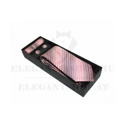 1 kép Marquis slim nyakkendő szett - Púderrózsaszín csíkos