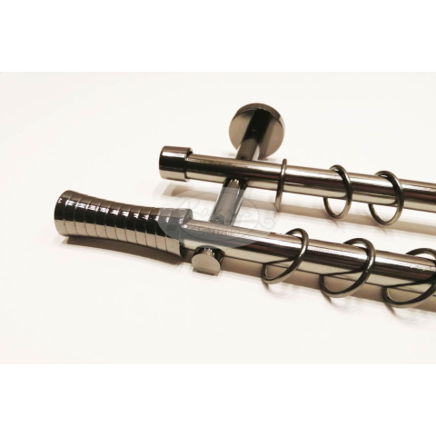 A MARSEILLE 2 rudas, 160 cm-es TITÁN színű fém karnis szett tartalma: 2 db 19 mm átmérőjű, 160 cm hosszú fém karnisrúd titán színben 2 db Marseille típusú fém karnis végzáró 2 db Nantes típusú fém karnis végzáró 2 db falra szerelhető fém konzol 32 db tit