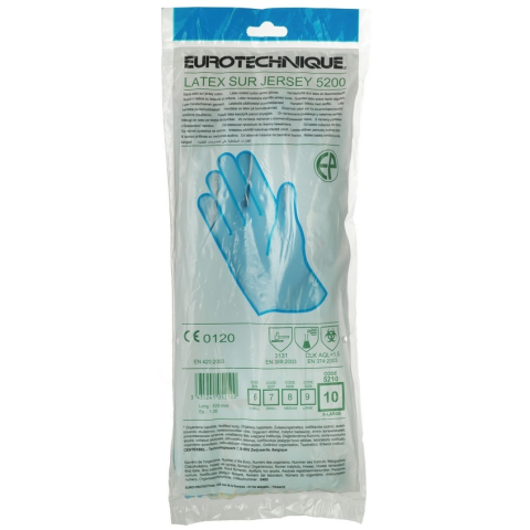 MÁRTOTT KÉK DMF MENTES LATEXKESZTYŰ: • pamut anyagra mártott kék latex • sav-, lúg- és vegyszerállóság, mikroorganizmusok elleni védelem • környezetkímélő, bőrbarát, vízbázisú DMF mentes technológia • 1,3 mm vastag, 30 cm hosszú, rugalmas • MÉRET: 6-os • CSOMAGOLÁS: 1 pár/csomag • EU szabvány: EN420, EN388: 3131, EN374-1, 374-2, 374-3: CKL