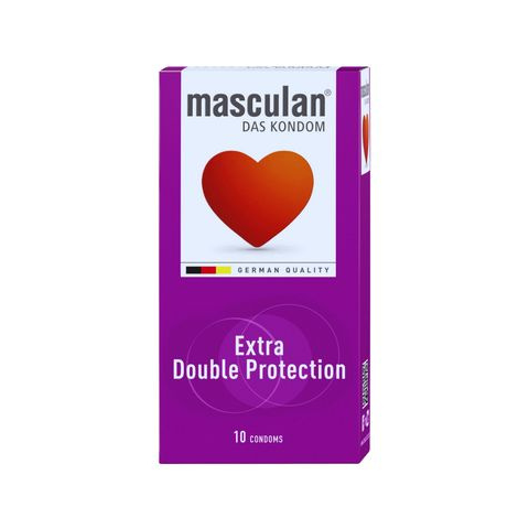 A Masculan Óvszer Extra Double Protection "dupla védelem" érdekében vastagabb falú kialakítással rendelkezik