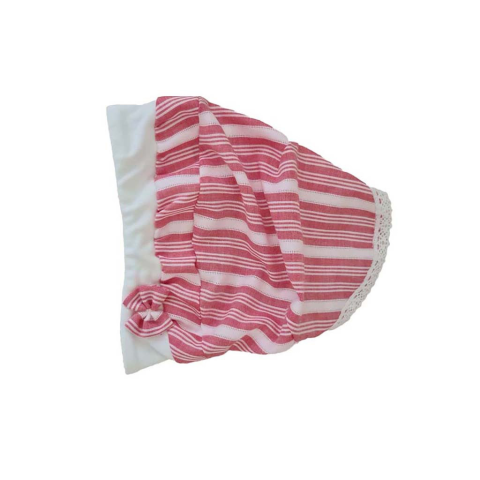 A PeggyBaby vékony, puha pamutanyagból készült hátul megköthető fejkendője, nemcsak kényelmes viselet, hanem a természet viszontagságaitól, a naptól és a széltől is megvédi a kicsik fejét. A tarkóvédő résznek köszönhetően strandra