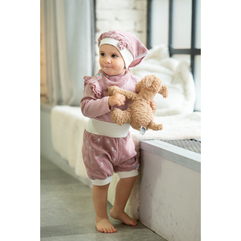 A PeggyBaby vékony, puha pamutanyagból készült hátul megköthető fejkendője, nemcsak kényelmes viselet, hanem a természet viszontagságaitól, a naptól és a széltől is megvédi a kicsik fejét. A tarkóvédő résznek köszönhetően strandra