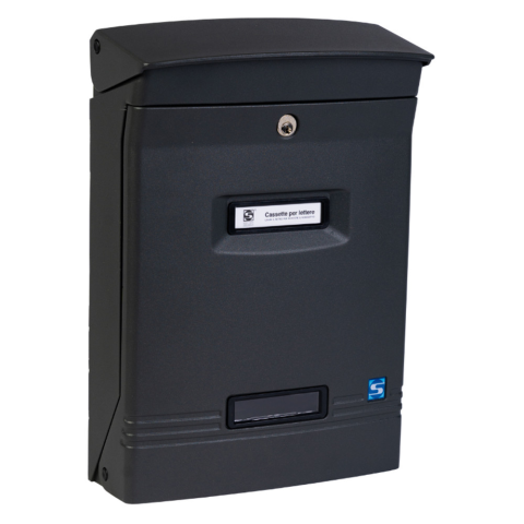 masszív alumínium postaláda • kapun, kerítésen kívülre szerelhető postaláda• anyaga tartós alumínium öntvény• műanyag porszórással színezett• időjárásálló lakkozással• esővédett elülső bedobónyílás• lefelé nyíló ajtó• betekintő nyílás és névtartó• króm