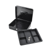 Master Lock-CB10 elegáns pénzkazetta •acéllemez pénzkazetta•süllyesztett hordozó fogantyúval•négyszögletes forma lekerekített élekkel•hat rekeszes műanyag aprópénztartó•alatta hely a bankjegyeknek•krómozott zár, kettő darab kulccsal