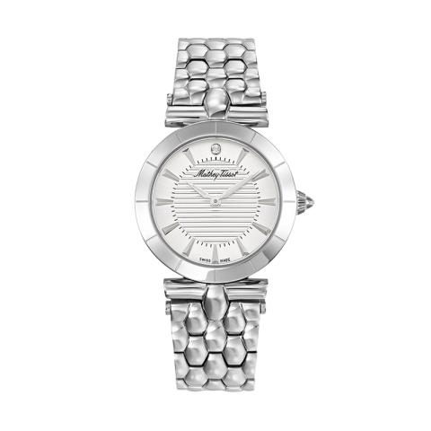 Csodaszép ékszeróra a MATHEY-TISSOT női kollekciójából. Karcálló zafírüveggel, dekorált számlappal, prémium minőségű tömör csattal és biztonsági zárral, hogy véletlenül se hagyd el a kezedről