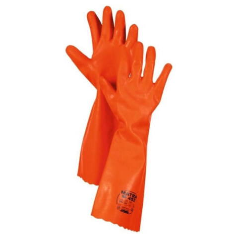 Kötött pamut, természetes latex keverékbe mártva, 40 cm Védi a kezet savakkal, lúgokkal, mosószerrel, vízben oldódó festékekkel szemben. Nem alkalmas olyan munkára, ahol olajat, zsírt, terpentint, benzolt, petróleumot, benzint, gázolajat használnak. Mech