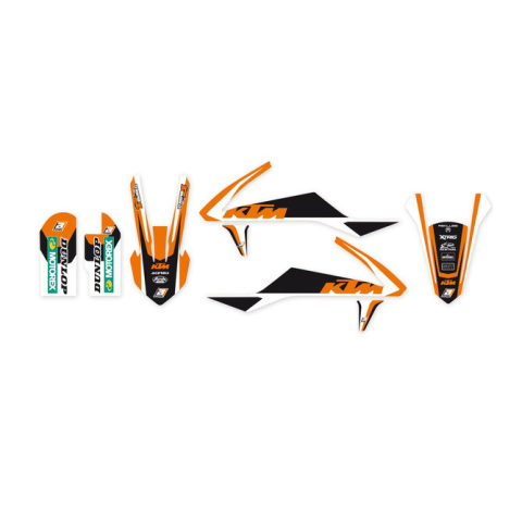 Blackbird Grafikai Készlet KTM SX 50 2016A Blackbird híres a motokrossz motorok számára készült kiváló minőségű matricakészleteiről és üléshuzatairól. A matricakészlet használatával megváltoztathatja motorja megjelenését anélkül, hogy az egész burkolatot