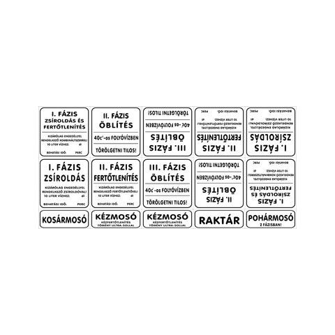 Az alap szettben is megtalálható mosogatási fázisok matricákból 2-2 garnitúra, nagykonyhák számára ahol több mosogatóhely van.
