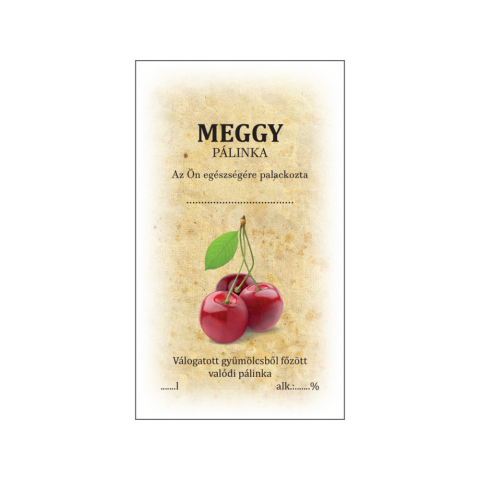 Matrica meggy - öntapadós pálnika címke borászati kellék árgrafikon
