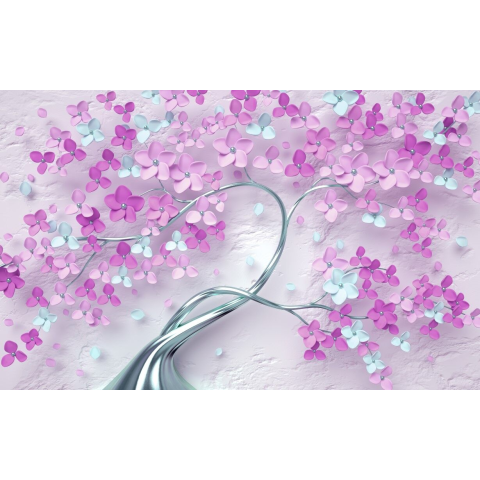 1 kép Matrica tapéta Absztrakt fa, lila, ezüst, 350 x 200 cm