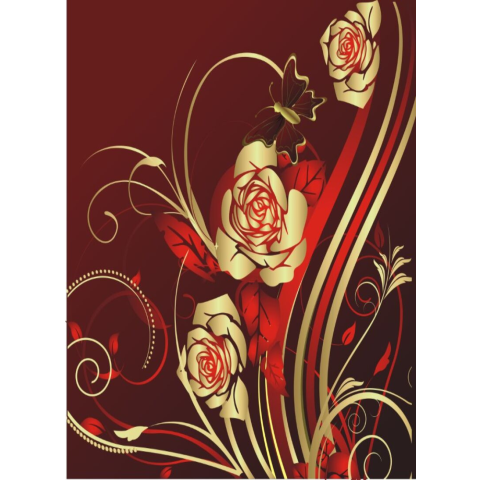 1 kép Matrica tapéta Arany rózsák, pillangók, absztrakt, 200 x 255 cm