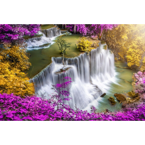 1 kép Matrica tapéta Cascada45 Vízesés a sárga erdőben, lila, 200 x 150 cm