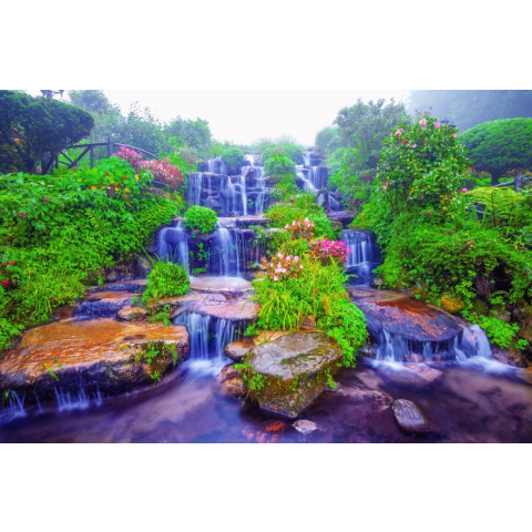 1 kép Matrica tapéta Cascada50 Vízesés a kertben virágokkal, 350 x 200 cm