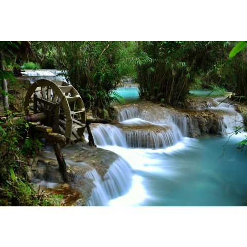 Matrica tapéta Cascada55 Vízesés malommal a folyón, 250 x 150 cm tapéta, díszléc és más dekoráció 1 kép