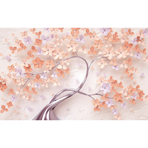 1 kép Matrica tapéta Fa krém virágokkal, absztrakt, 250 x 150 cm