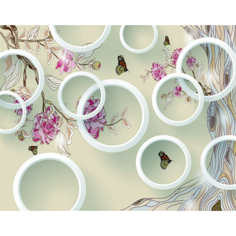 1 kép Matrica tapéta Pillangók, virágok és körök, 250 x 200 cm