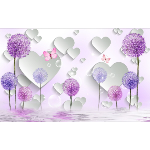 1 kép Matrica tapéta Szívek, pillangók, pitypangok, 400 x 250 cm