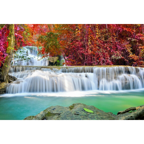 1 kép Matrica tapéta Vízesés a vörös erdőben, 200 x 150 cm