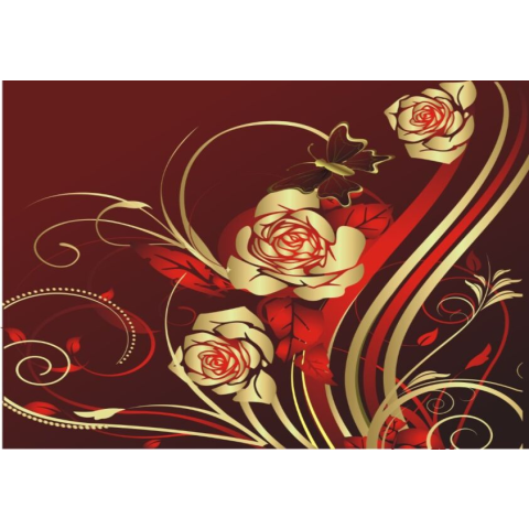 1 kép Matricás tapéta Arany rózsák, pillangók, absztrakt, 220 x 135 cm