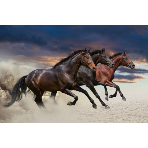 1 kép Matricás tapéta Három ló, vágta, 350 x 200 cm