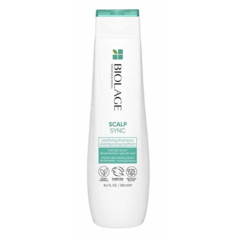 Matrix Biolage ScalpSync Clarifying mélytisztító sampon, 250 ml - Gyengéd tisztító sampon, amely eltávolítja a maradványokat, a lerakódásokat és a felesleges olajat és faggyút - Gyengéd tisztító sampon zsíros fejbőrre - Fermentált teával és glikolsavval