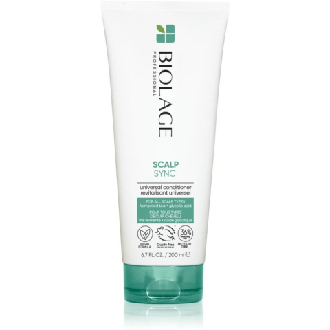 Matrix Biolage ScalpSync univerzális balzsam, 200 ml - Könnyű kondicionáló, amely ideális minden fejbőrtípusra -Táplálja a fejbőrt, fényessé és simává téve a hajat - A benne lévő fermentált tea és glikolsav nyugtató és hidratáló hatású - Kompatibilis az