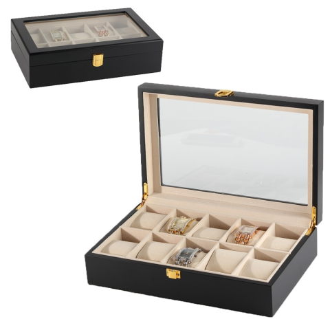1 kép MATT FEKETE FA ÓRATARTÓ DOBOZ 10 ÓRÁNAK