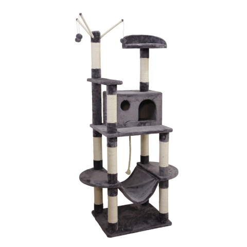 • modern és tartós macskapihenő, rengeteg játéklehetőséggel és pihenőhellyel• extra nagy odú: 45.5 cm x 30.5 cm x 29 cm• függőágy: 35 cm x 49 cm• ágy: O 39 cm• szizál kötéllel• egyszerűen és gyorsan összeszerelhető• alap mérete: 59 x 52 cm• szizállal bevo