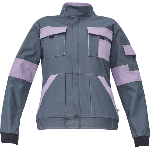 MAX SUMMER LADY kabát szürke/v.lila 48 • női cipzáras munkakabát könnyű pamutszövetből • 2 első zseb • 2 dupla mellzseb zsebfedővel • 1 zseb a bal ujjon • megerősítés a váll-és könyökrészeken • rugalmas mandzsetta és derékszegély • anyag: 100% pamut, a