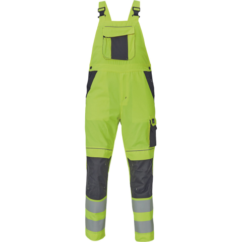 MAX VIVO HV mellesnadrág sárga 54 • férfi HI-VIS mellesnadrág rugalmas derékkal, széles pántokkal, műanyag csatokkal • 2 első zseb, 1 oldalzseb, 1 nagy mellzseb, 2 hátsó zseb • 2 kis hátsó zseb a jobb combon • nyomtatott 7,5 cm-es fényvisszavető csík a