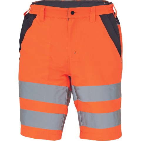 MAX VIVO HV rövidnadrág narancssárga 48 • férfi HI-VIS rövidnadrág rugalmas derékkal • 2 első zseb, 2 hátsó zseb • két 7 cm-es nyomtatott fényvisszavető csík a comb körül • fényvisszavető szegés