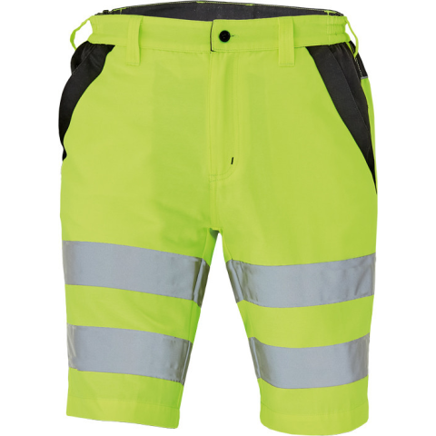 MAX VIVO HV rövidnadrág sárga 44 • férfi HI-VIS rövidnadrág rugalmas derékkal • 2 első zseb, 2 hátsó zseb • két 7 cm-es nyomtatott fényvisszavető csík a comb körül • fényvisszavető szegés