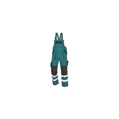 MAX WINTER RFLX kertész zöld/fekete 48 • bélelt férfi munkanadrág • széles pántok műanyag csatokkal • 2 első zseb, 2 oldalzseb • 1 nagy cipzáras mellzseb, 2 hátsó zseb • fényvisszavető csíkok a szárak alsó részén • megerősített térdrész