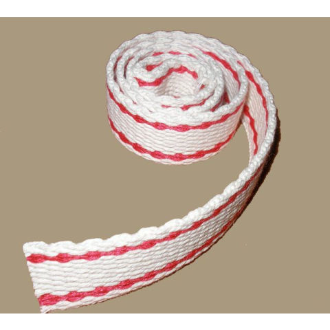 Maxi gurtni piros-fehér színű pamut anyagból készül. 22 mm-es. Ablakon lévő redőnyhöz kb 4,5-5 méter szükséges. Ajtón lévő redőny esetében 5-5,5 méter az ajánlott. Megvásárolható egész tekercsben is (50 m). Szállítási idő 2-3 munkanap. R