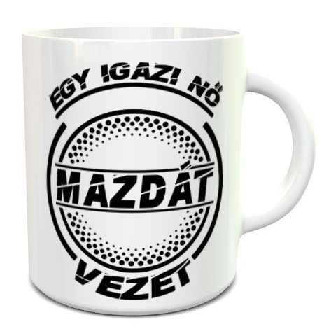 Mazdás bögre, igazi nő Mazdát vezet. Egy igazi nő Mazdát vezet feliratos bögre. Meglepetést keresel Mazda tulajdonosnak vagy olyan embernek aki ilyen autóról álmodozik, egy ilyen bögrének biztos örülni fog bármilyen alkalomra is kapja. Rendeld díszdobozba