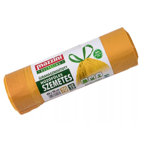 Teljes MAZZINI Újrahasznosított húzófüles szemeteszsák 70 l (64x70 cm) 15 db/roll termékleírás