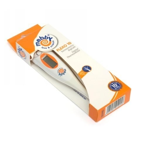 A Mebby Flexo lázmérő rugalmas vége segíti a komfortos használatot, 10 mp alatt leméri a hőmérsékletet, és LCD kijelzőjén mutatja a végleges értéket. Az utolsó mérést tárolja és +/- 0,1 C pontossággal mér. Hónaljban, rektálisan és orálisan is használható