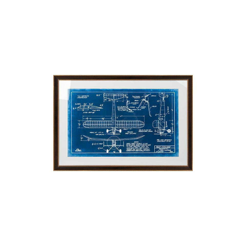 MECHANIKAI REPÜLŐGÉP TERVRAJZ - Falikép - 90x62 cm Ez a lenyűgöző falikép egy klasszikus keretbe foglalt, kiváló minőségű műalkotás, mely egy mechanikus repülőgép műszaki rajzát ábrázolja. A mélykék uralkodó színével és kontrasztos fehér vonalaival a...