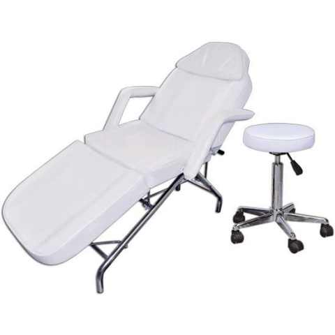 Kozmetikai kezelőágy kivehető karfával, ajándék forgó ülőkével, tört fehér műbőr kárpittal