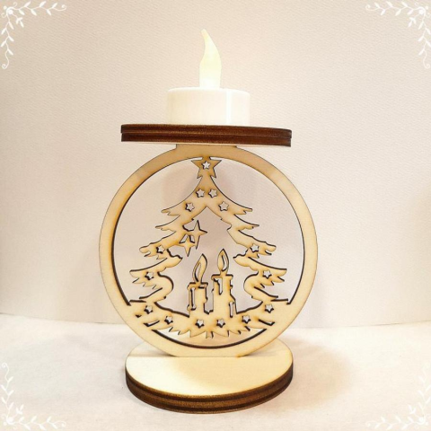 Lézervágott natúr fa mécsestartó, lapraszerelten.