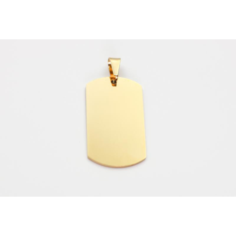 Arany színű, téglalap alakú nemesacél medál. Az ár a szöveg gravírozás árát tartalmazza. Mérete kb :43x23 mm. A nemesacél ékszerek egyre népszerűbbé válnak a divatban és az ékszerkészítésben, mivel tartósak, ellenállóak és esztétikailag vonzóak. A ne